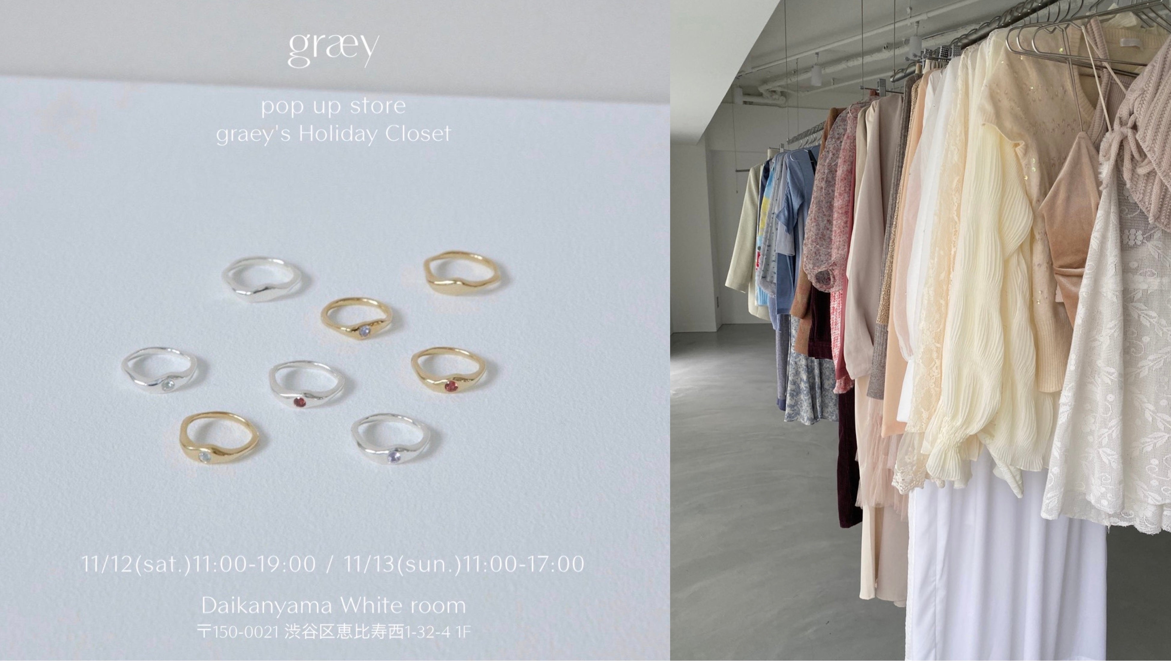 2022年11月12日(土)、13日(日)の2日間、代官山にてHoliday Collectionを一足先にご覧頂けるPopup Storeを開催。Holiday Collectionを一足先にご覧頂ける他、先行販売も承ります。また、Popup会場では撮影で使用した衣装やスタッフがセレクトしたお洋服の販売も行います。