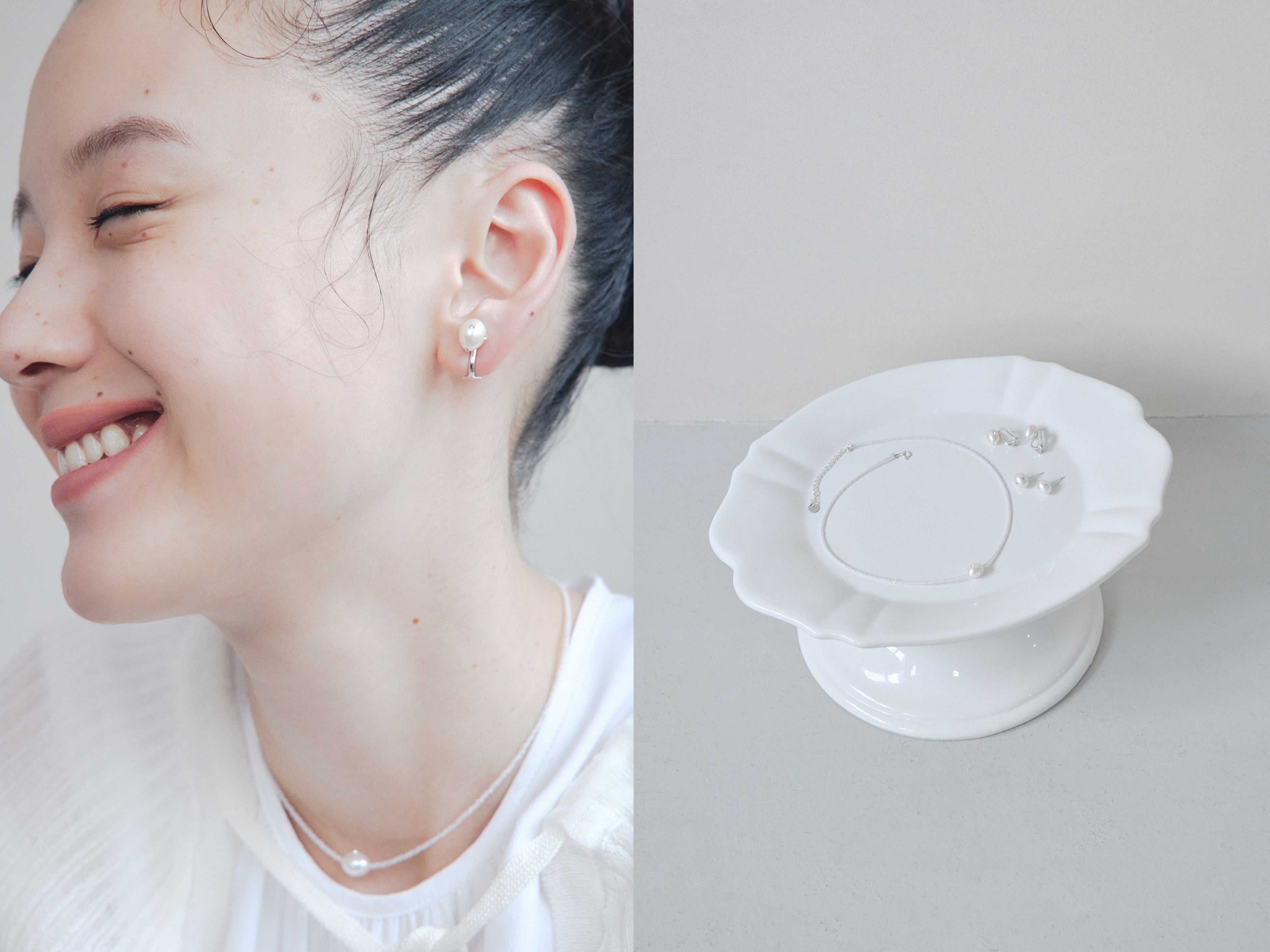 パールにガラスの輝きを散りばめたCuddleシリーズ。小さくささやかながらも、ときめきや大切な人を想うピュアな気持ちが詰まったようなキュートなアクセサリーです。こちらはセットでもご用意。大切な方へのギフトにぴったりのアイテムになっております。