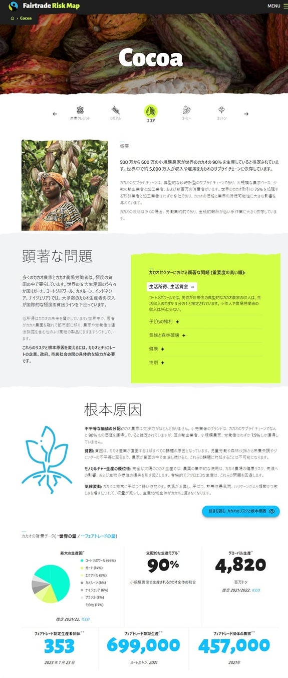 <一例:カカオのページ>※現在英語のみ。日本語訳についてはご使用のブラウザの翻訳機能をご活用ください