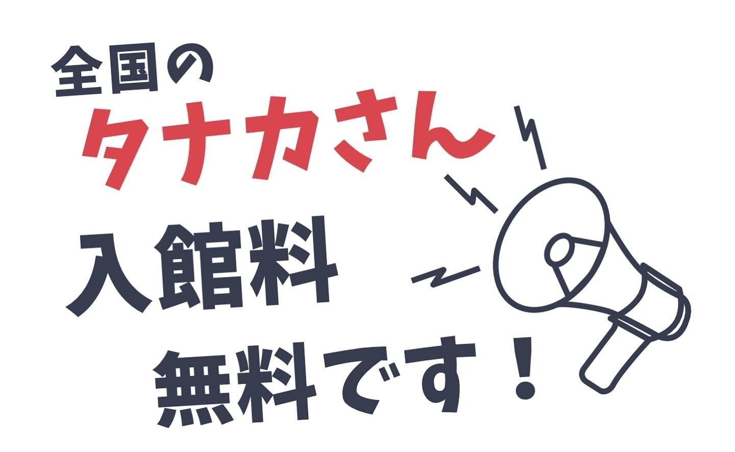 タナカさんご家族は、ご両親とお子様まで入館料無料です。田中、田仲など、タナカさんの漢字の表記は問いません。