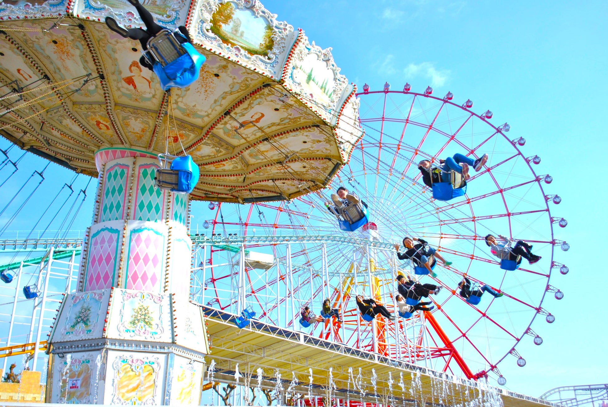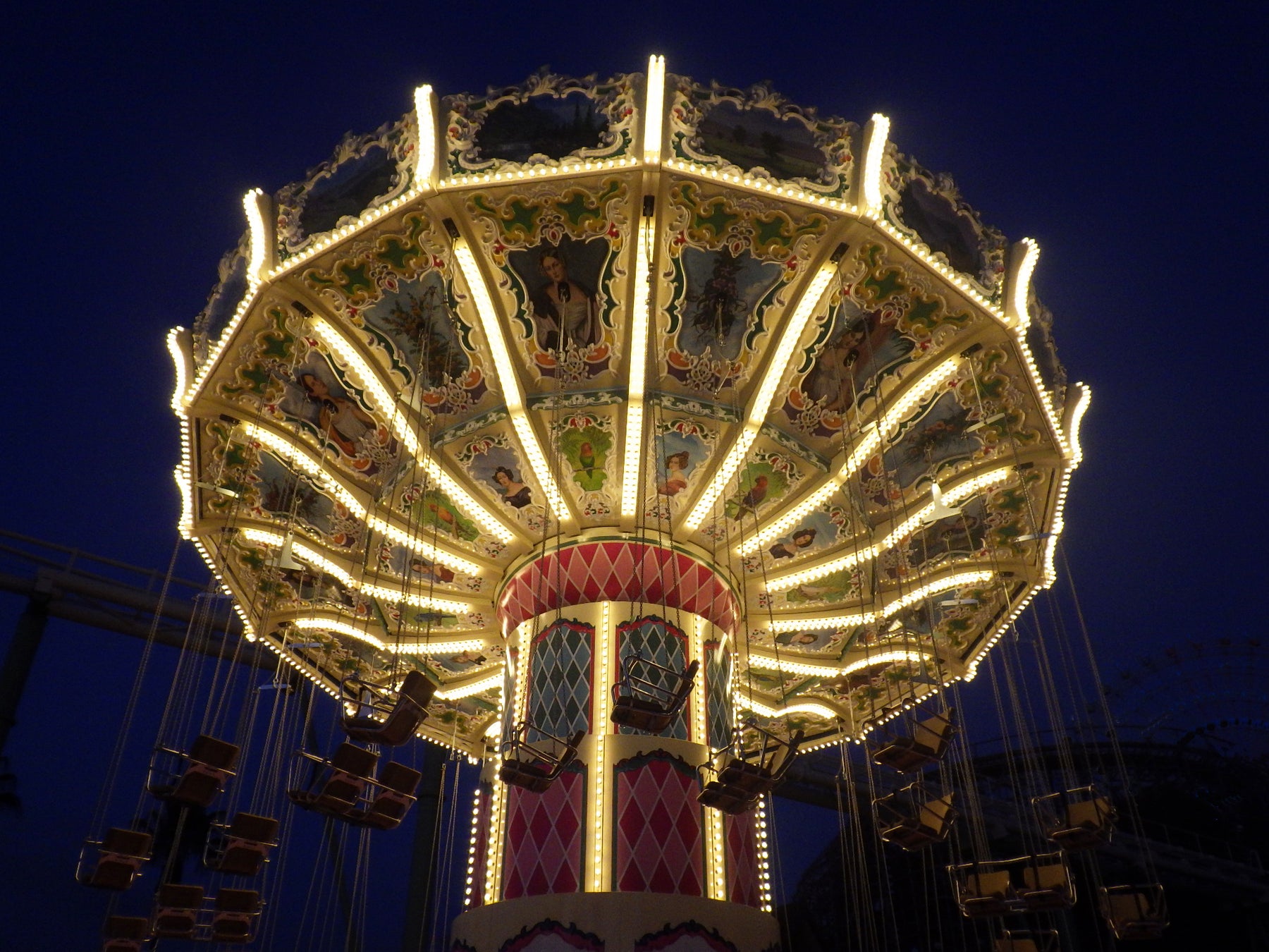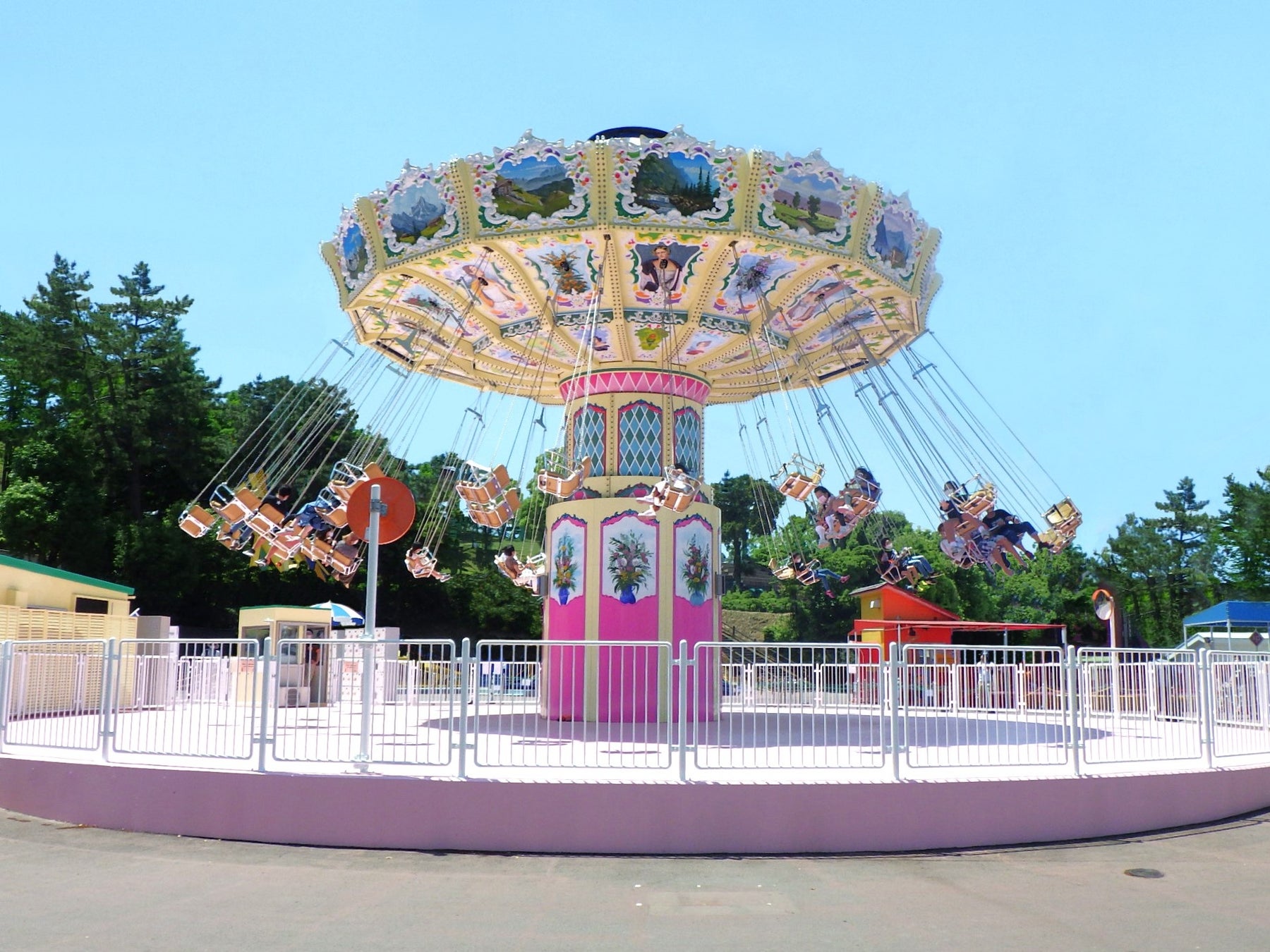 正面ゲートから入園して一番に目につくアトラクションが空中ブランコの「ウェーブスインガー」。