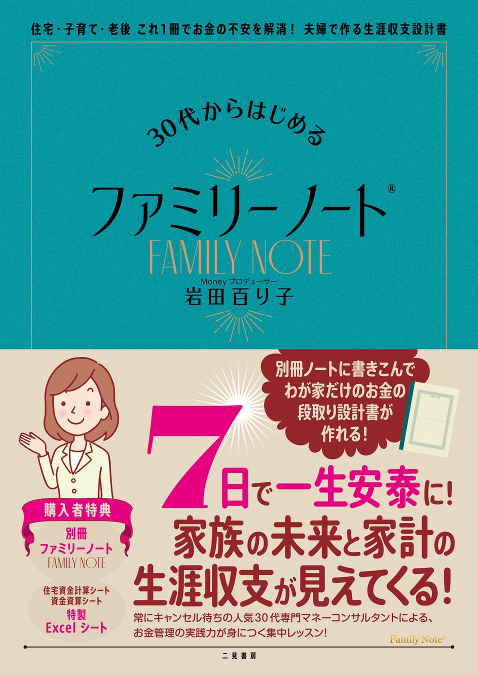 書籍『30代からはじめるファミリーノート® 住宅・子育て・老後 これ1冊でお金の不安を解消!夫婦で作る生涯収支設計書』7/25発売