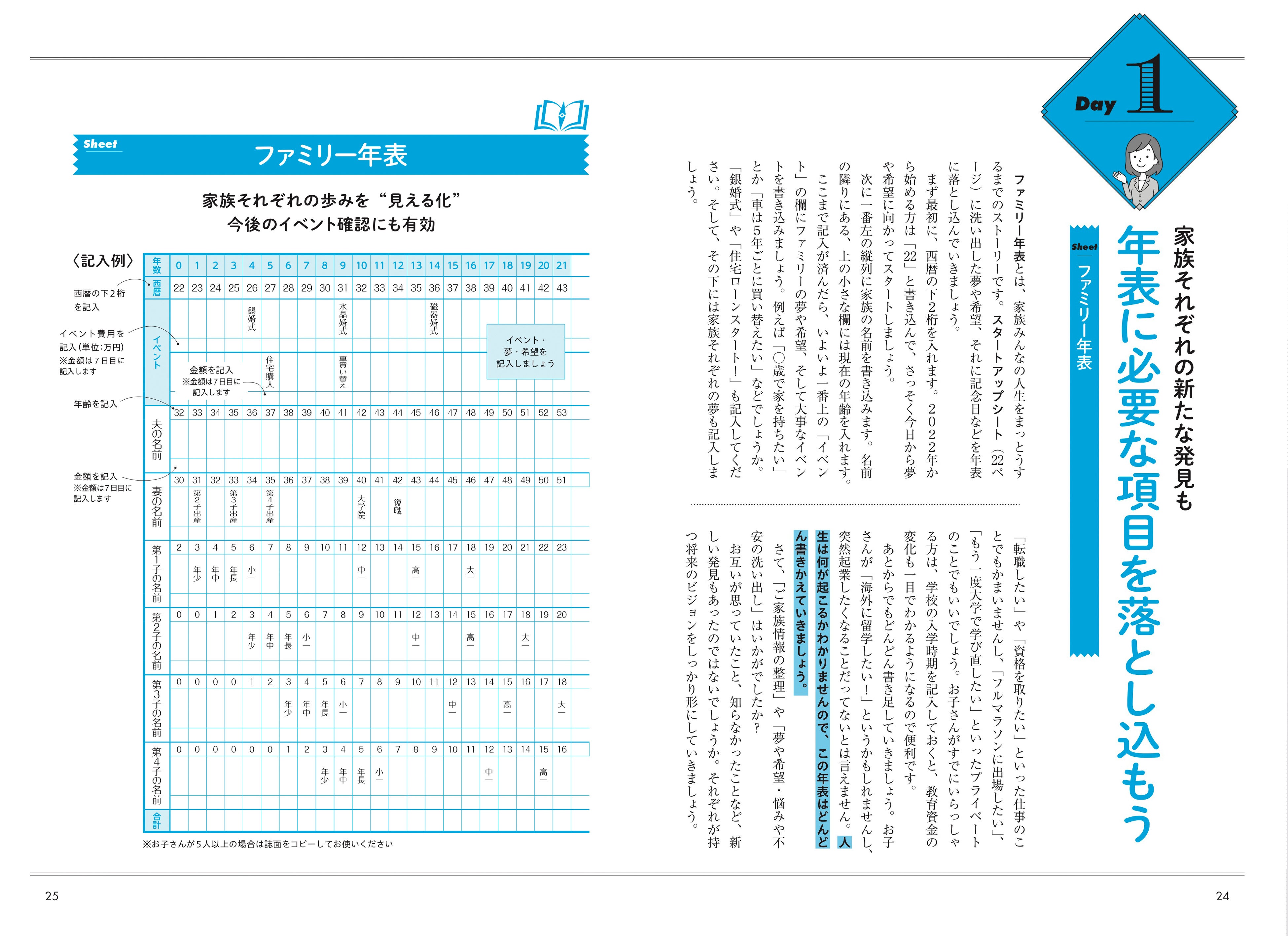 本書に付いている別冊ファミリーノートに書き込んでいくと、わが家だけの生涯収支設計書ができあがります