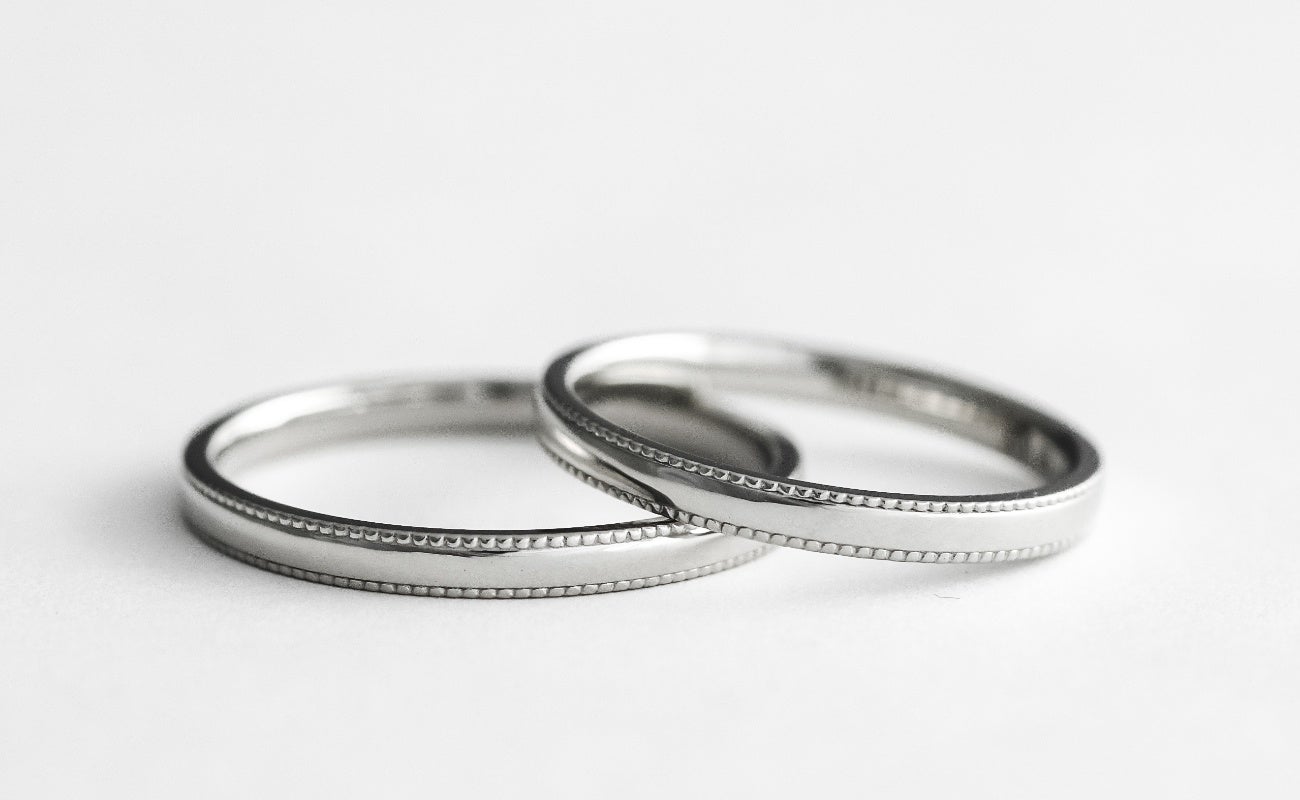 永遠や子宝の意味を持つミルグレインをサイドに配した結婚指輪。