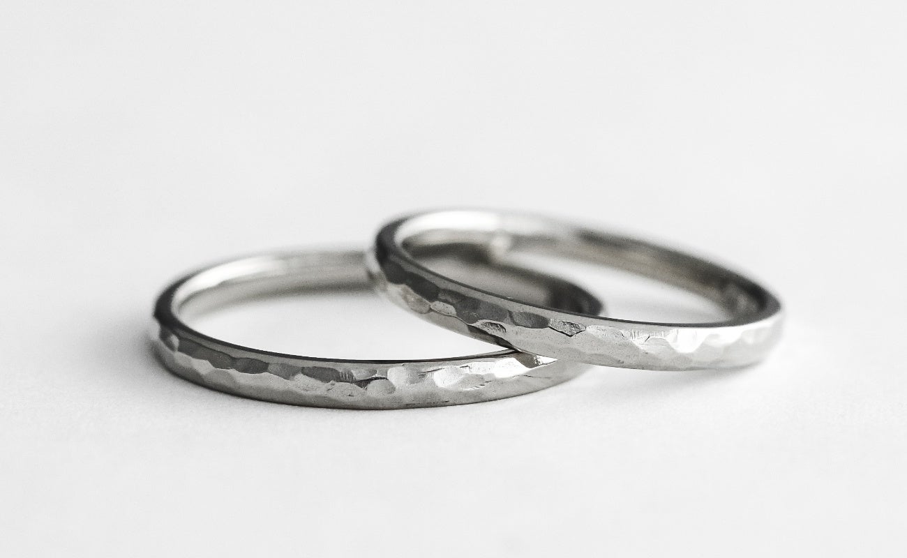 リング全周にカット鎚目を施したカジュアルに身に着けるマリッジリング。