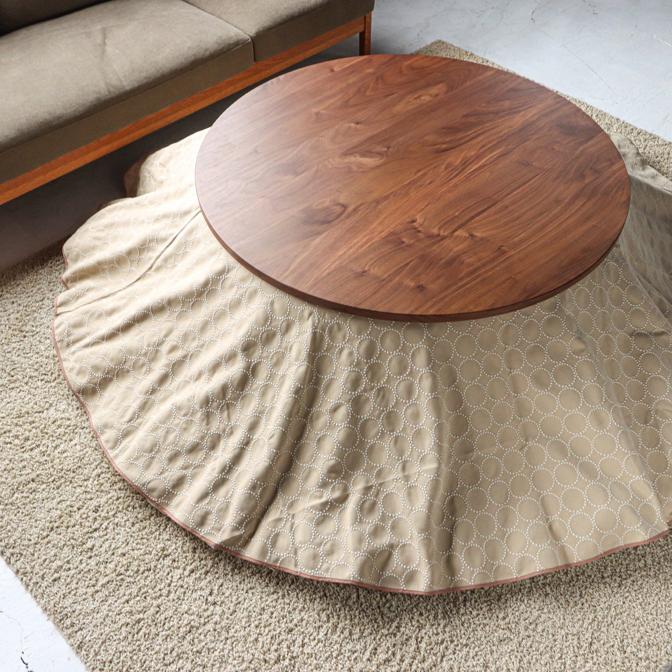 秋冬カラーのミナ ペルホネン「tambourine(タンバリン)」柄のオリジナルこたつ上掛けを9月10日~9月30日まで期間限定で受注販売いたします!