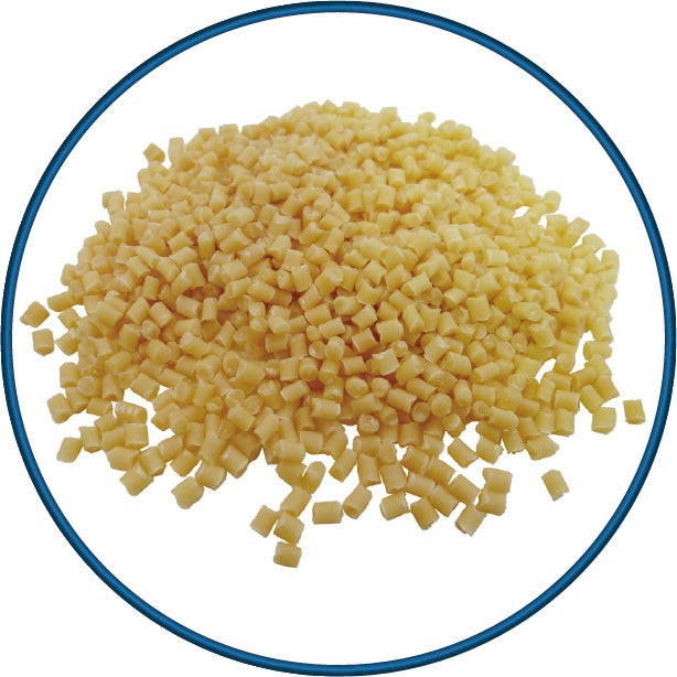 「グリーンチップ CMF」はポリプロピレン樹脂 (PP樹脂)に木材由来のセルロースファイバーを高配合した複合樹脂です。
