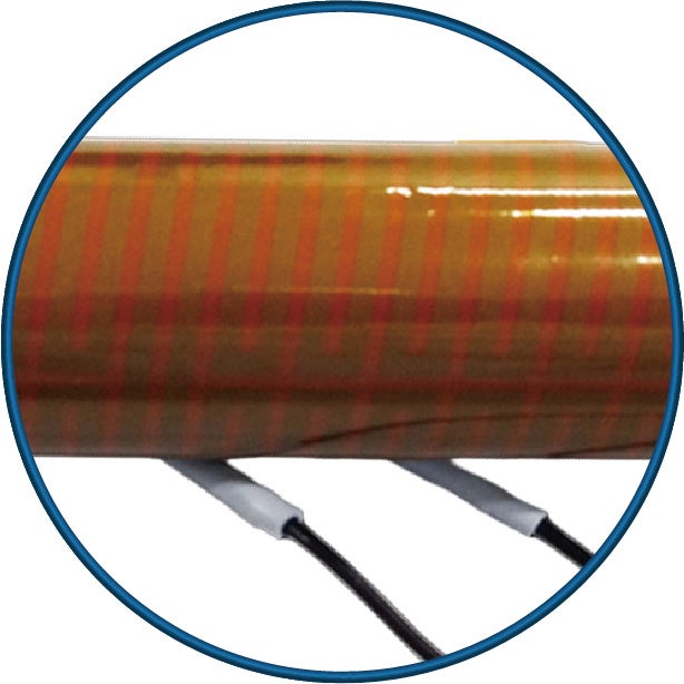 フレキシブルなため被加熱体に密着し、発熱ムラも少なく、効率的に加熱します。