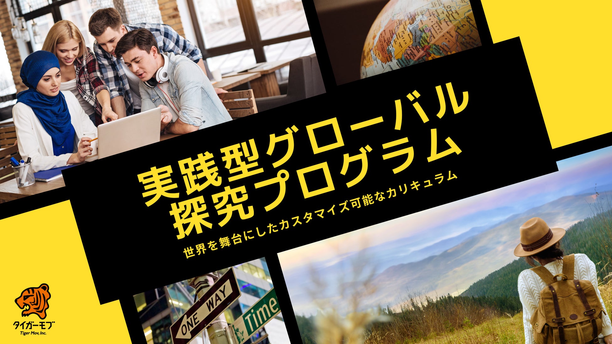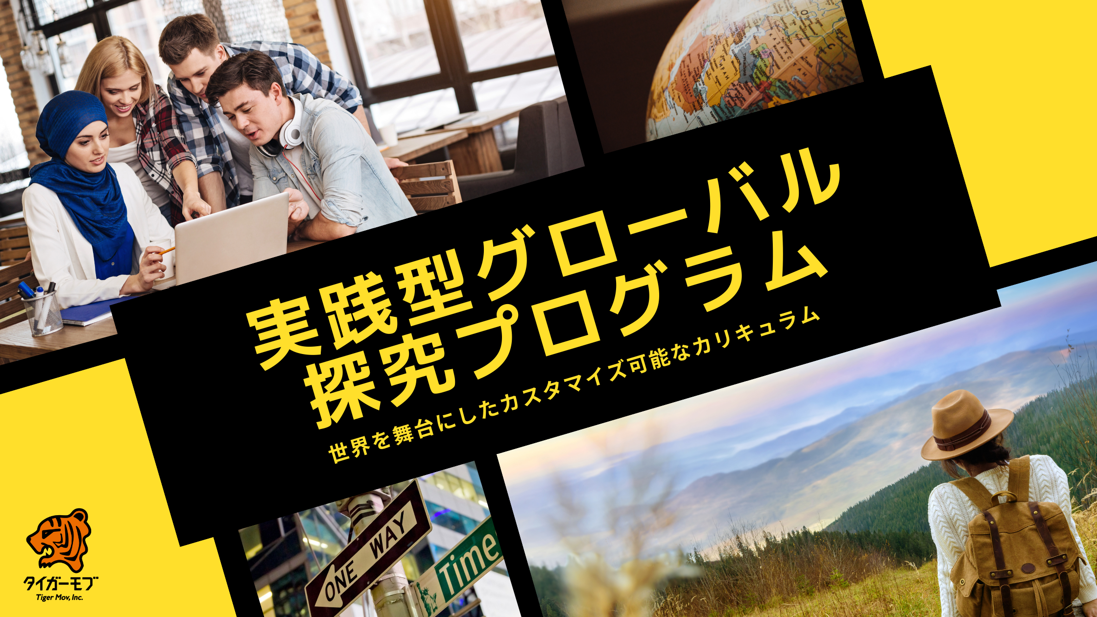 タイガーモブの「グローバル探究プログラム」は世界規模のテーマを題材とした実践型のプロジェクト学習を提供します。