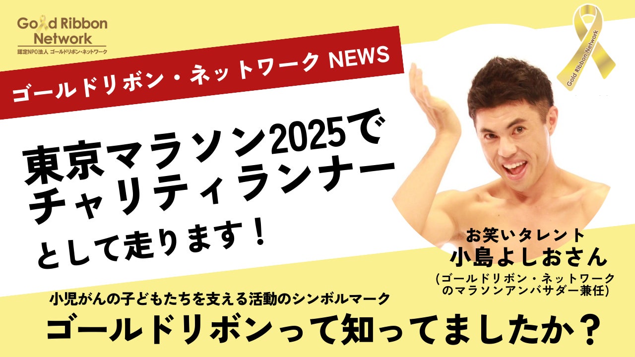 認定NPO法人ゴールドリボン・ネットワーク(所在地:東京都豊島区 理事長:松井秀文)は、お笑いタレントの小島よしおさんを、東京マラソン2025(2025年3月2日開催予定)チャリティのマラソンアンバサダーおよびチャリティランナーに決定しました。