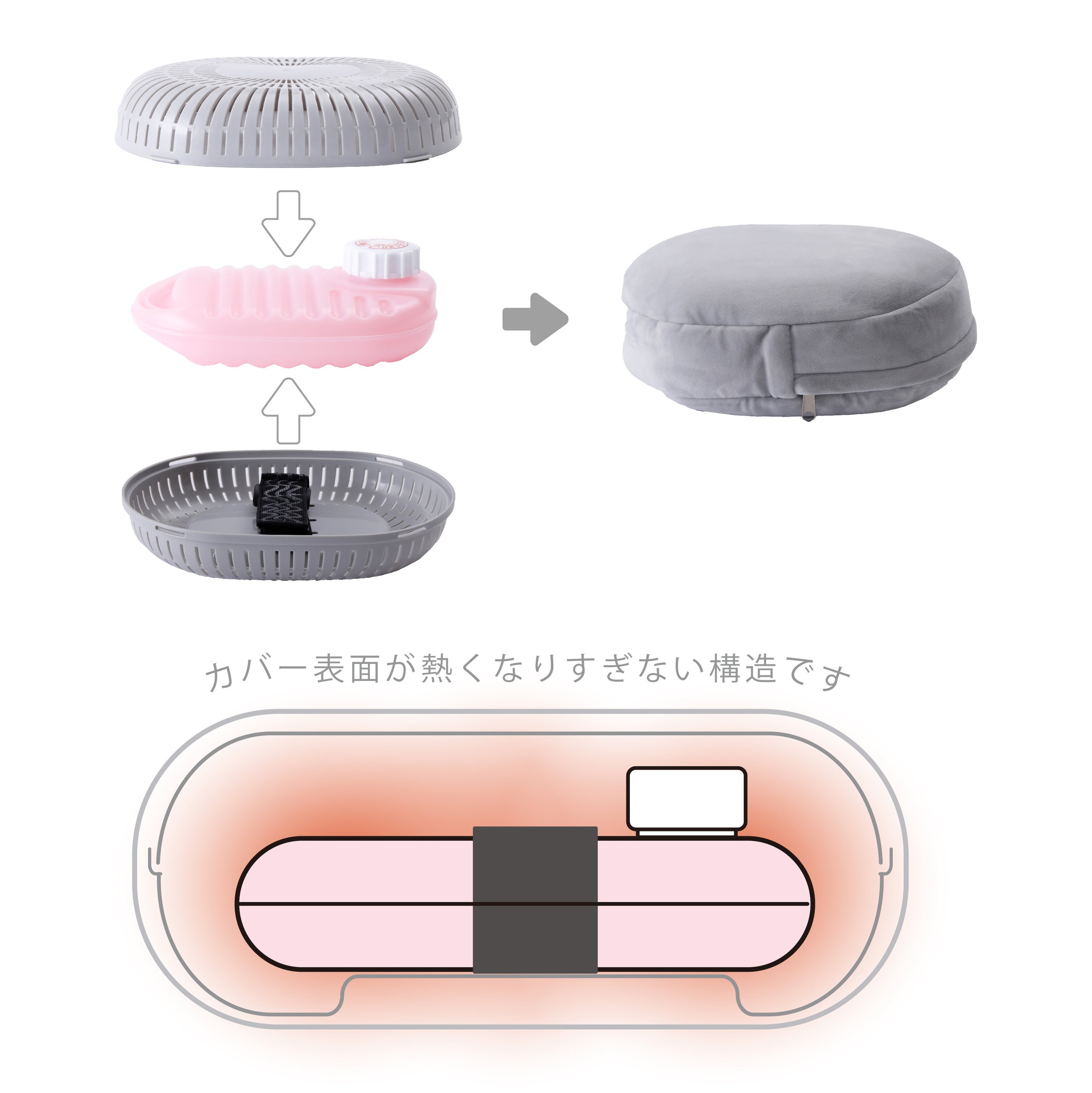 湯たんぽ本体、フレーム、湯たんぽカバーのセット。