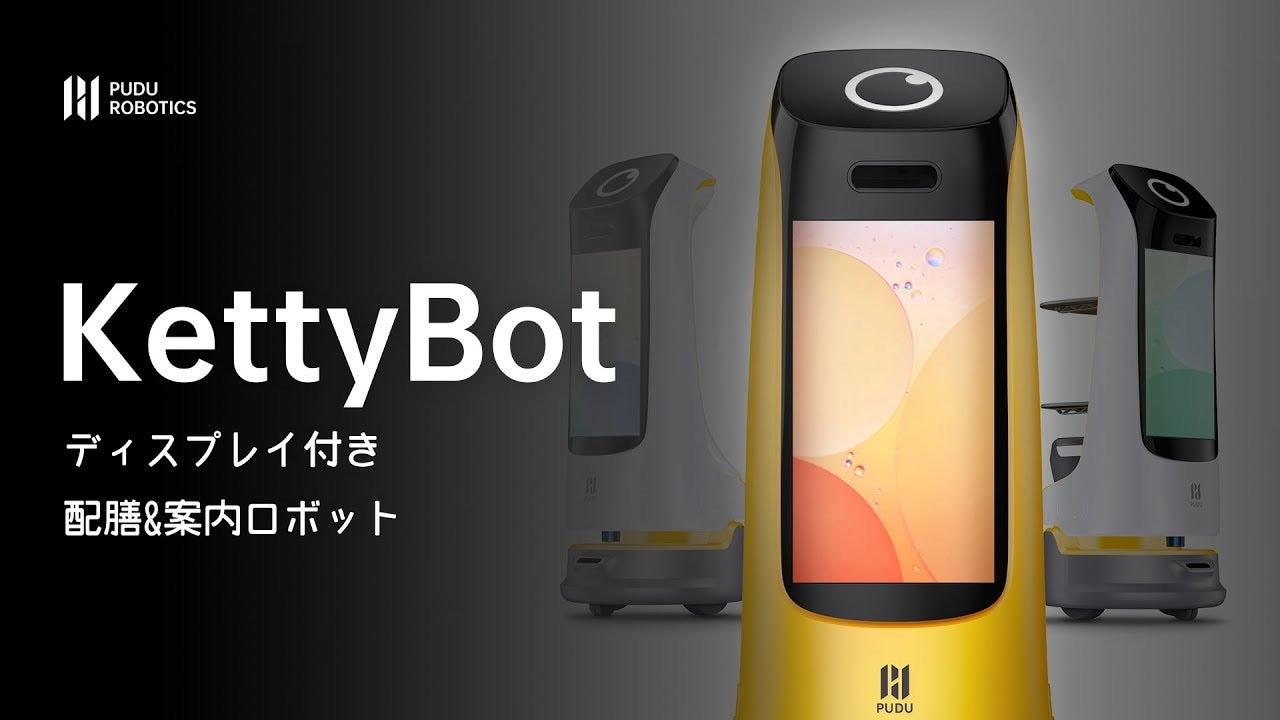 Pudu Robotics社(本社:中国深圳市、設立:2016年)の開発したKettyBotは優れた障害物回避能力や移動能力を有する最新式の広告ディスプレイ付配膳ロボットです。