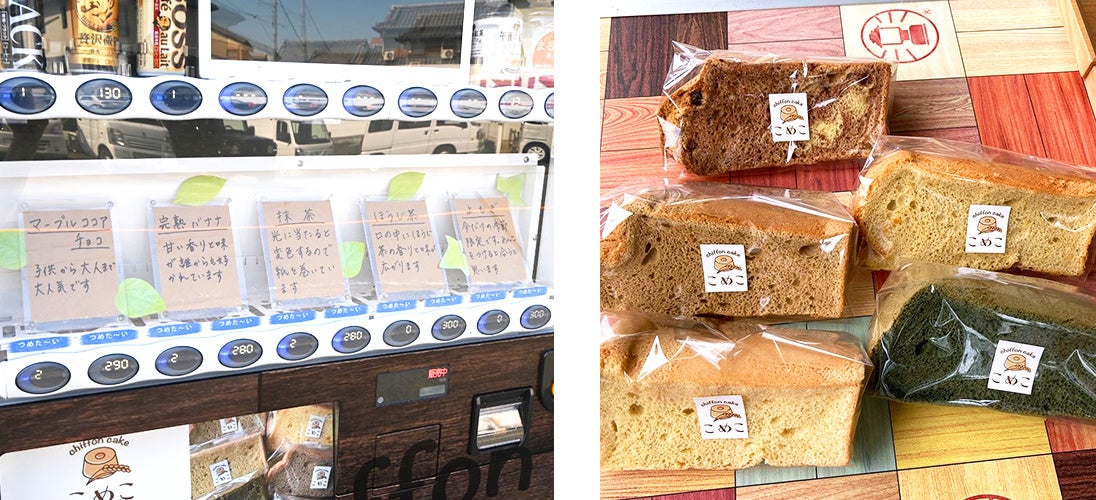 三重県松阪市の『米粉シフォンこめこ』、シフォンケーキが購入できる自販機を設置!看板型デザイン自動販売機「ボードステーション」