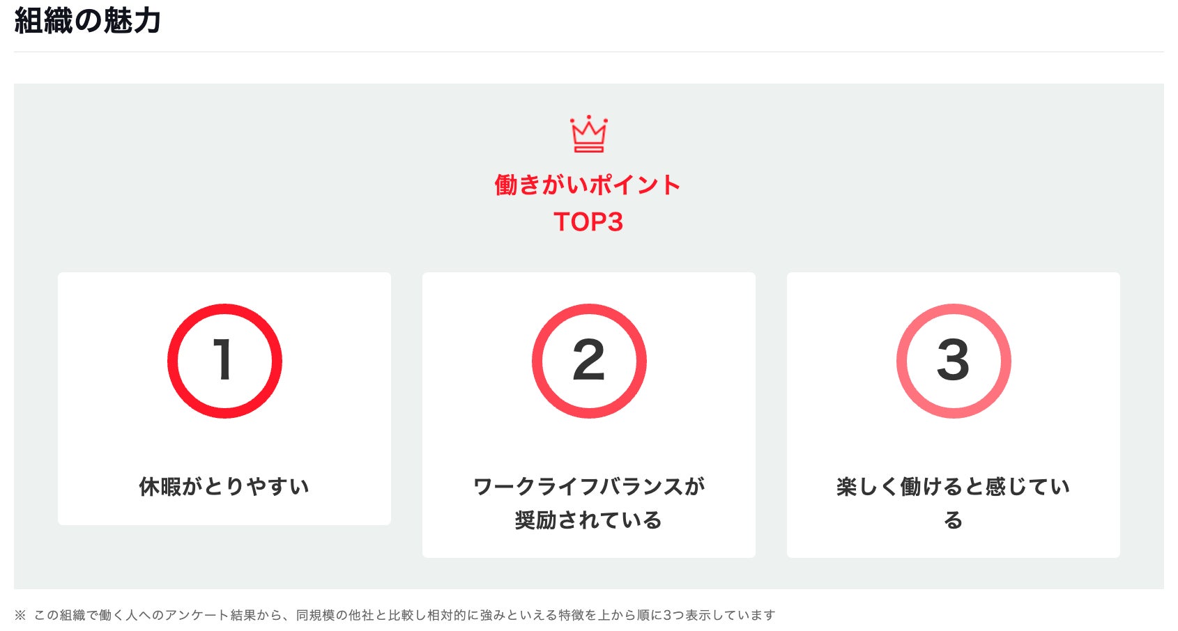 ③楽しく働けると感じている の3点が働きがいポイントとして評価され、選出に至りました。