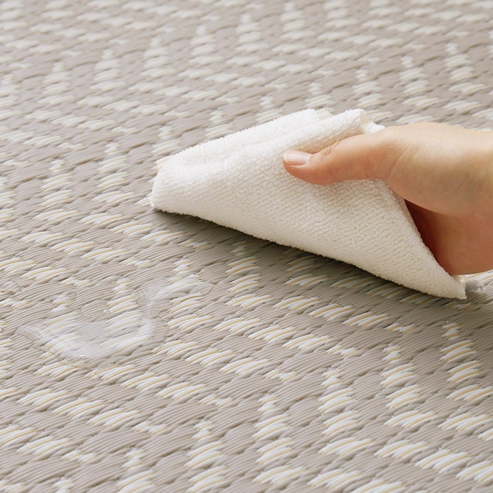 天然のい草と比べ、丈夫で摩耗やひっかきに強いポリプロピレン素材。小さな子どもやペットのいる方や、長く使いたい方におすすめの1枚です。