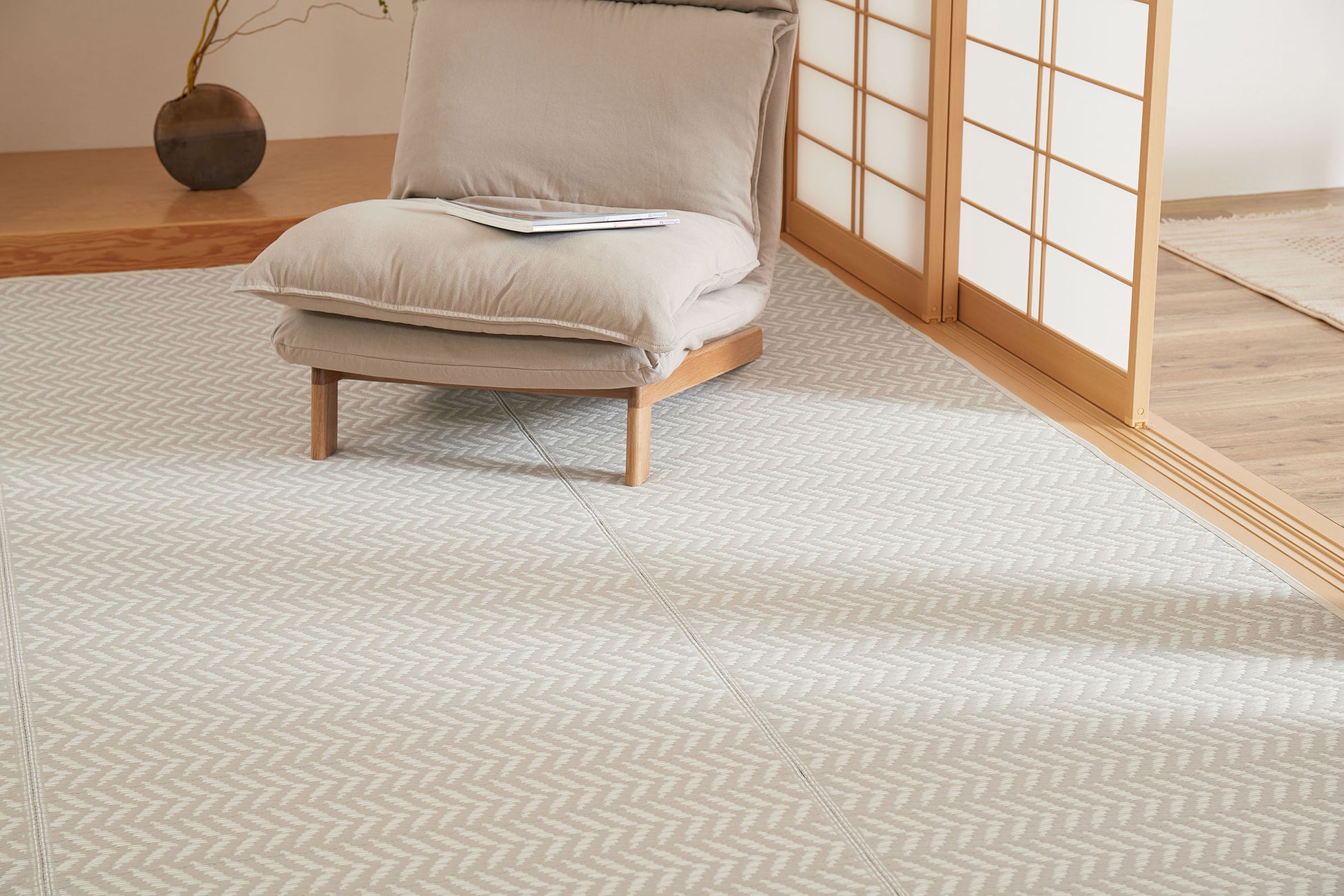 くすみパステル×ヘリンボン柄がかわいい!水に強い樹脂パイプ製の上敷ならお手入れ簡単イメージチェンジできる
