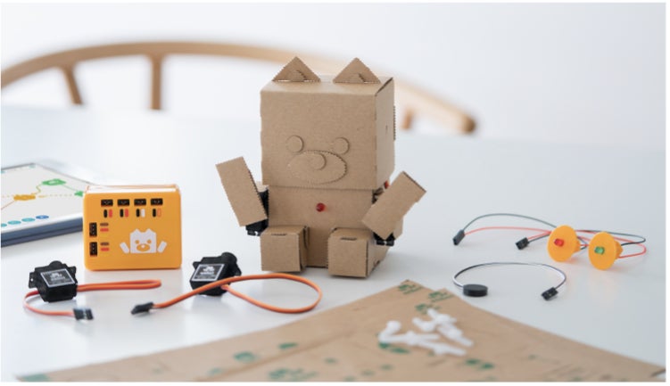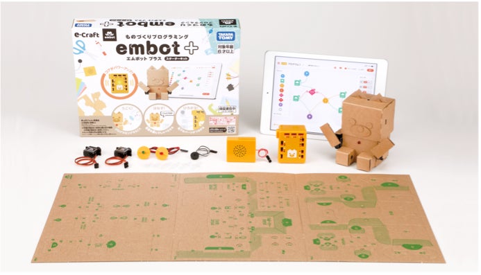 embot(エムボット)はダンボールと電子工作 パーツを用いてロボットを組み立てることで、電子工作やものづくりの基礎を学ぶことができます。また、タブレット等にインストールした専用アプリを用いて、子どもたちでも簡単にプログラミングし、組み立てたロボットを動かすことができます。一連の作業を通してプログラミングも学ぶことができるサービスです。プログラムをフローチャート形式で組むことができるため、if文やfor文など、より高度なプログラミング要素も直感的に身に付けることが可能です。