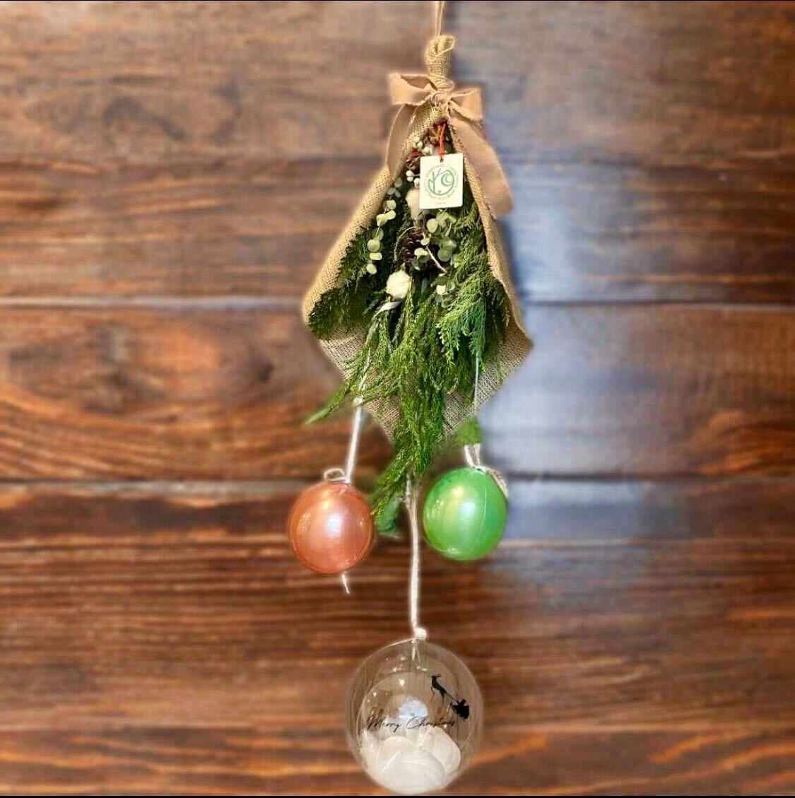 当ショップでは、上記のクリスマスリースプロジェクトの寄付でいただいた返礼品を活用し、アップサイクル商品として数量限定のクリスマスバルーンギフトを製作しました。素材の多くは子ども達にも身近な植物ばかりであり、自然ならではの個性や変化も楽しむことができます。当ショップとしては生の植物を扱うことが初めての挑戦でありましたが、森から来た身近な植物をあしらうことで、単にギフトを贈るだけでなく、私たちの身近にある環境問題への意識を高めるきっかけになればという想いで製作いたしました。