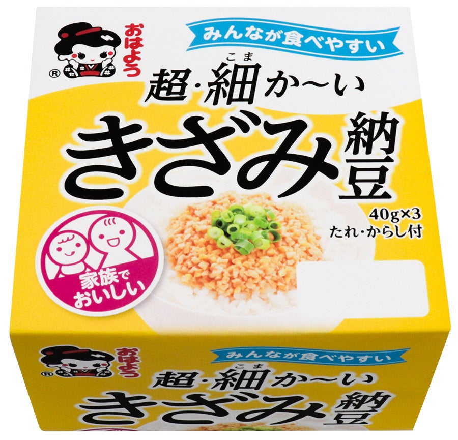 超・細か〜いきざみ納豆は、ひきわり納豆をさらに細かくすることで、離乳期のお子さまなど、噛む力の弱い方にも食べやすい納豆をめざして2000年から製造販売しております。発売から23年となり現在では、これまでひきわり納豆の食習慣があまりなかった関東や、納豆そのものを食べる習慣が比較的少なかった関西などでも、子育て世帯を中心に当商品の支持が広がっております。