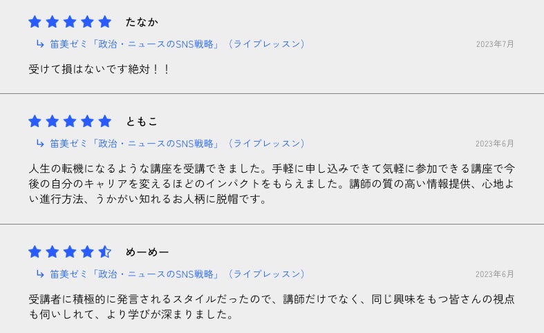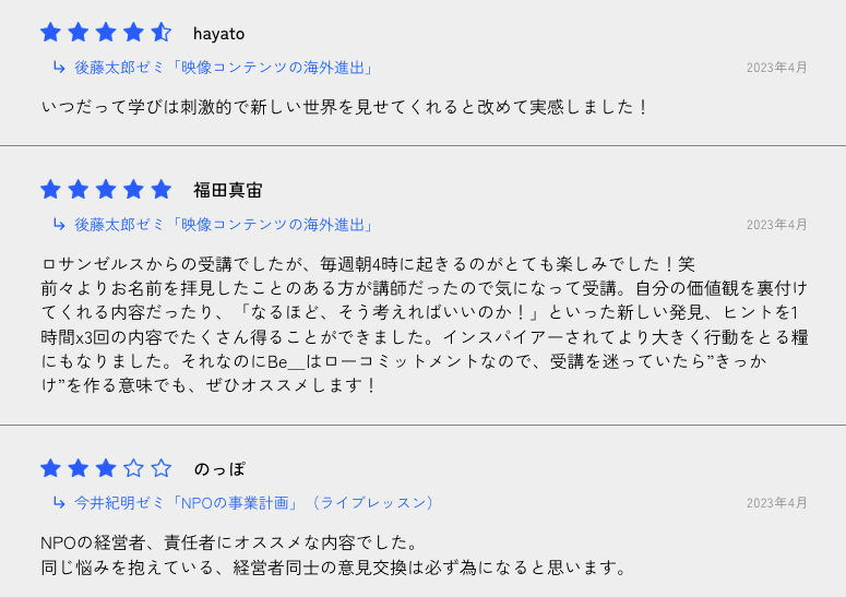 これまで、520+名のお客様にご利用いただき、多様なキャリアや語学、健康についてなどのライブレッスンをお届けしてまいりました。