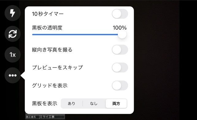 クラウド工事写真アプリ「ミライ工事」を提供する株式会社ミライ工事:代表取締役社長 神山 庸、以下:当社)は、写真撮影時に、電子黒板あり・なしの写真を同時に撮影できる設定できる機能を追加したことをお知らせいたします。
