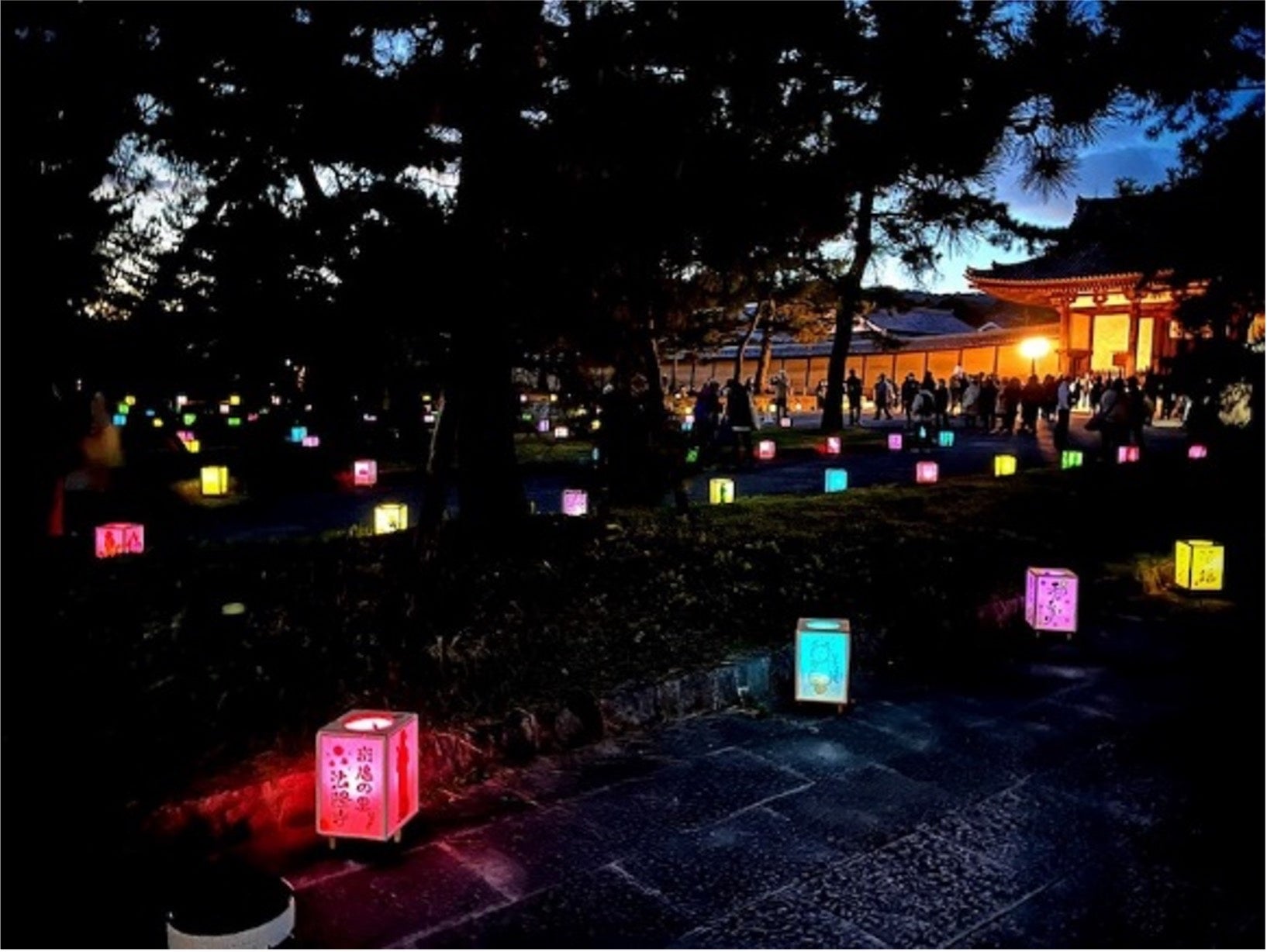 世界文化遺産である法隆寺の中門のライトアップをはじめ、門前広場や参道に様々な「あかり」を灯し、南大門を開門した法隆寺を眺めて「貴重かつ特別な夜」を体験できるイベントです。