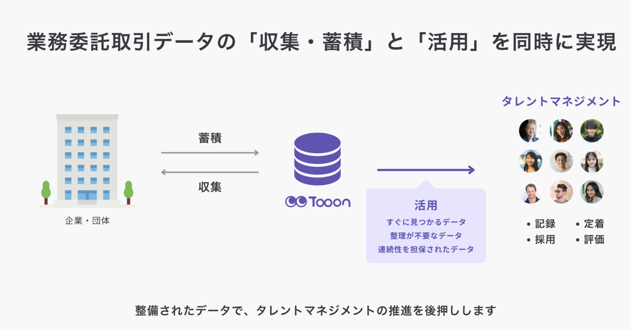 導入企業様は、Tooonを通して日々のオペレーションを行っていくことでトラブルリスクの軽減やタレントマネジメントに繋げていただくことができます。