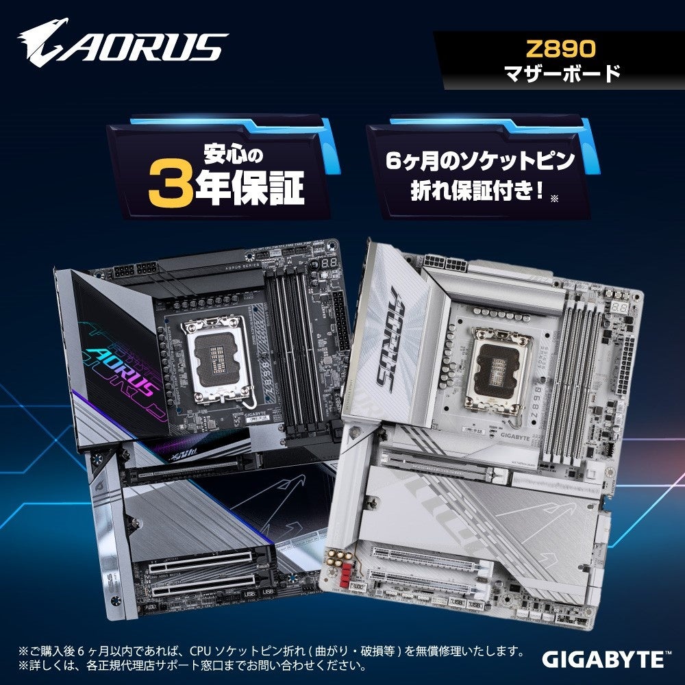 Intel Z890 チップセット・マザーボード製品も、業界最長のご購入後6ヶ月CPUソケットピン折れ(曲がり・破損等) 無償修理保証対象です。