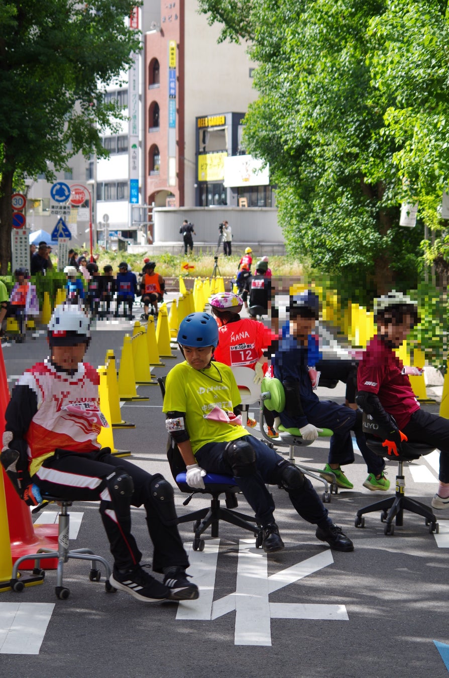 「いす-1GP」とは事務いすを使って1周200mのコースを何周走れるかを競う2時間耐久レースです。そんな「いす-1GP」が愛知県一宮市の銀座通商店街特設コースにて開催されました。当社も堅牢性バツグンの「SKOLD」をベースに、リラックス状態へとサポートするファイテン社の水溶化メタル技術「アクアチタン」を使用した「SKOLD pt」で参戦。天候晴れ、気温イイ感じ、路面状態良好のベストコンディションです。