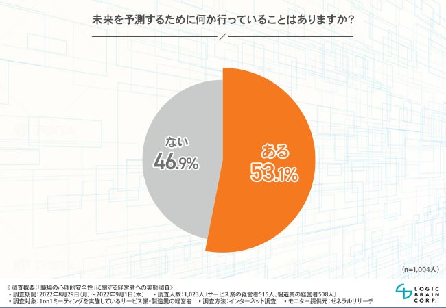 「未来を予測するために何か行っていることはありますか?」と質問したところ、『ある(53.1%)』『ない(46.9%)』という回答結果になりました。