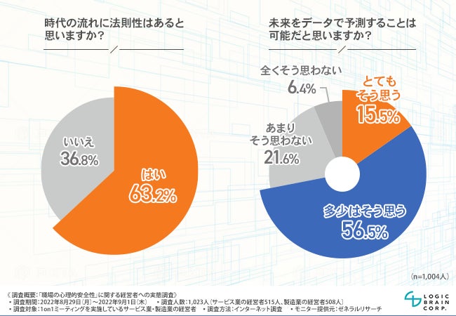「時代の流れに法則性はあると思いますか?」と質問したところ、『はい(63.2%)』『いいえ(36.8%)』という回答結果になりました。