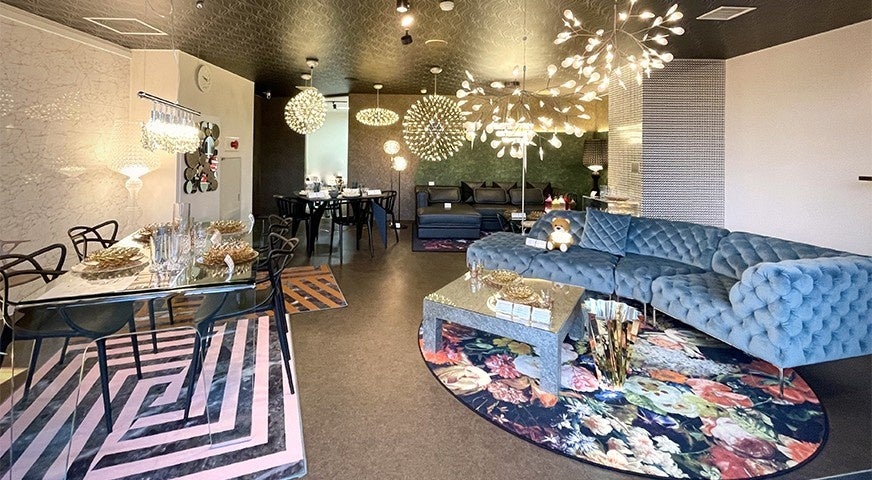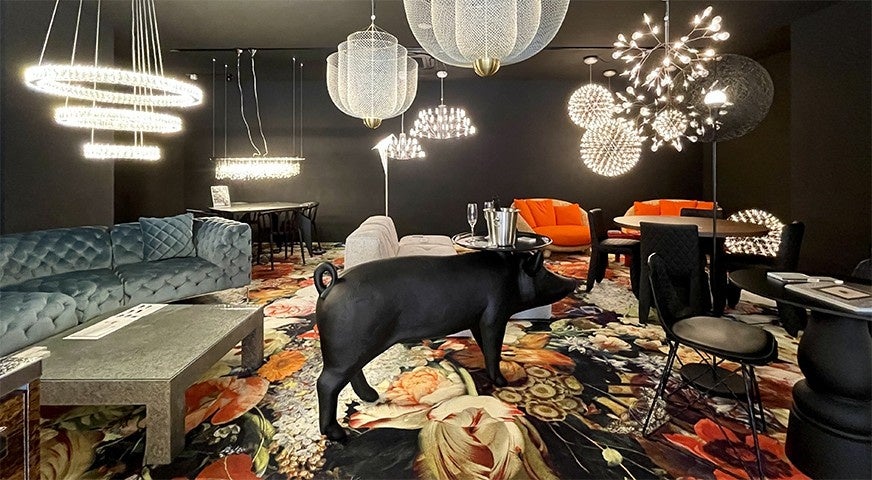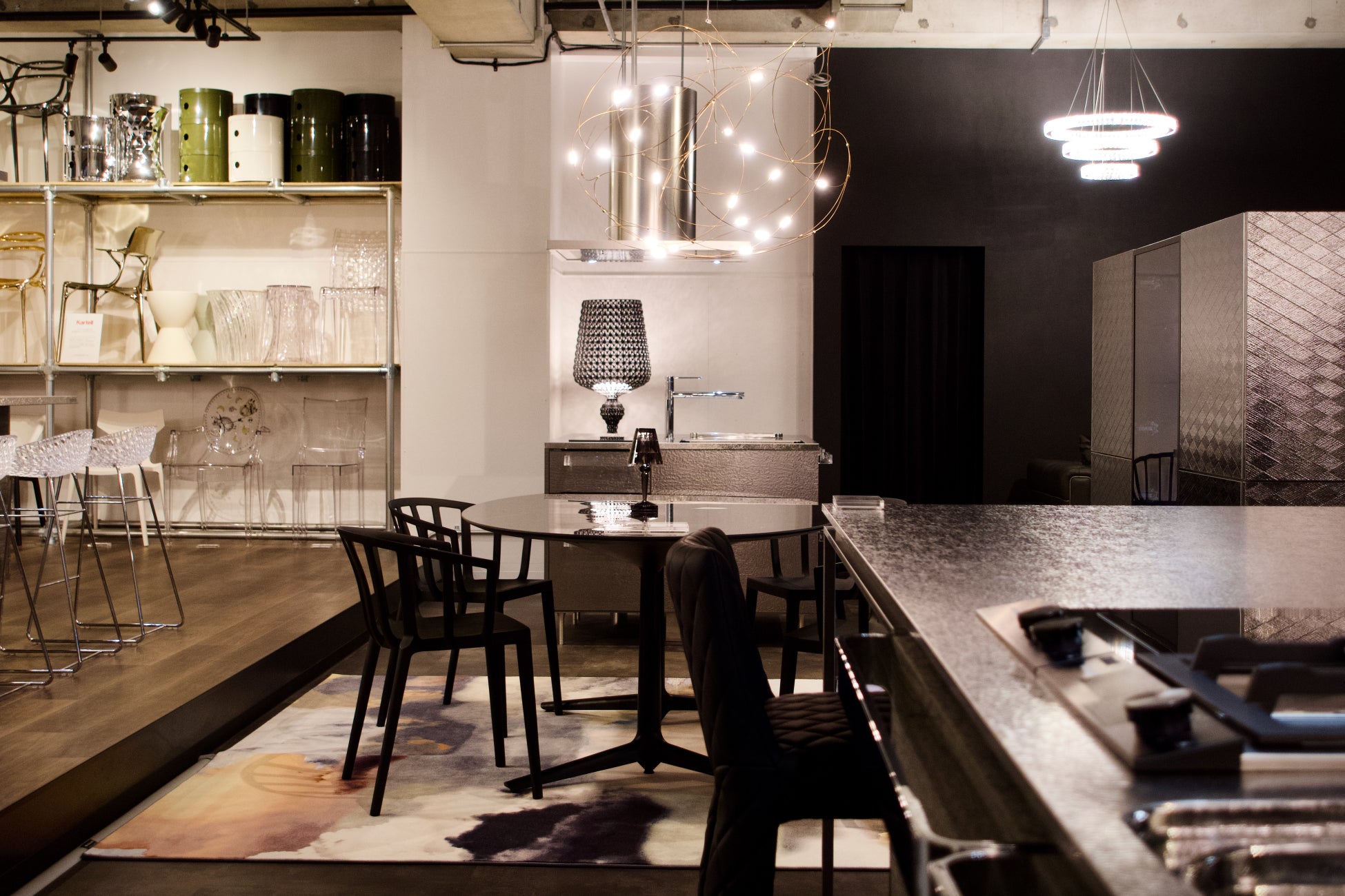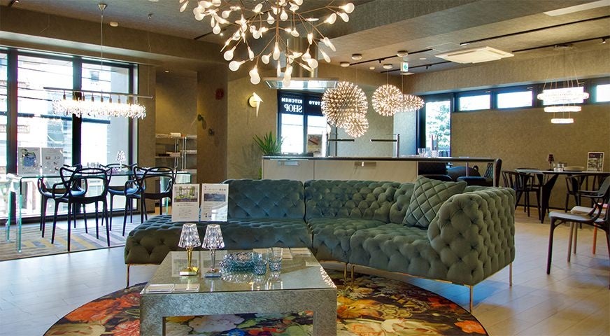 インテリアはオリジナルだけでなく、世界で注目されるオランダの「moooi(モー イ)」やイタリアの「Kartell(カルテル)」の日本総代理店を務め、世界中から家具、照明、モザイク、プロダクトアー ト、ファッションを独自の目線でセレクトし、販売。ショールームを国内外 19 カ所に構える。