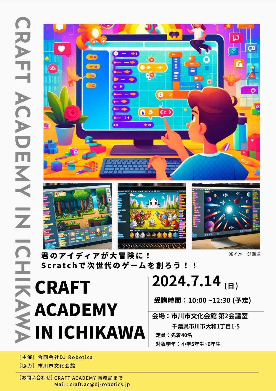 本プログラミング教室「Craft Academy in Ichikawa」や今後の企画に関するお問い合わせは、合同会社DJ Roboticsまでお願いします。