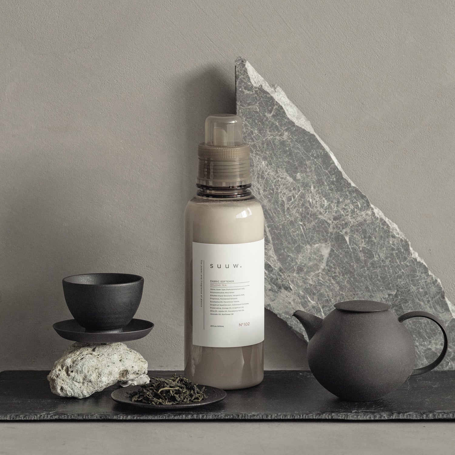 ティータイムから着想を得た「ティーシリーズ」がsuuw.のフレグランスに加わります。新たに登場したのは「アールグレイティー」「ウーロンティー」「チャイティー」の3種類。「アールグレイ」は定番の香りとして柔軟剤とハンドソープで、「ウーロンティー」「チャイティー」は季節限定の香りとして柔軟剤で展開いたします。構想から約3年を費やし、それぞれ個性が異なる”ティー”を再現。suuw.製品の特徴でもある、洗練された香りとやさしい香り立ちをご体感いただけます。