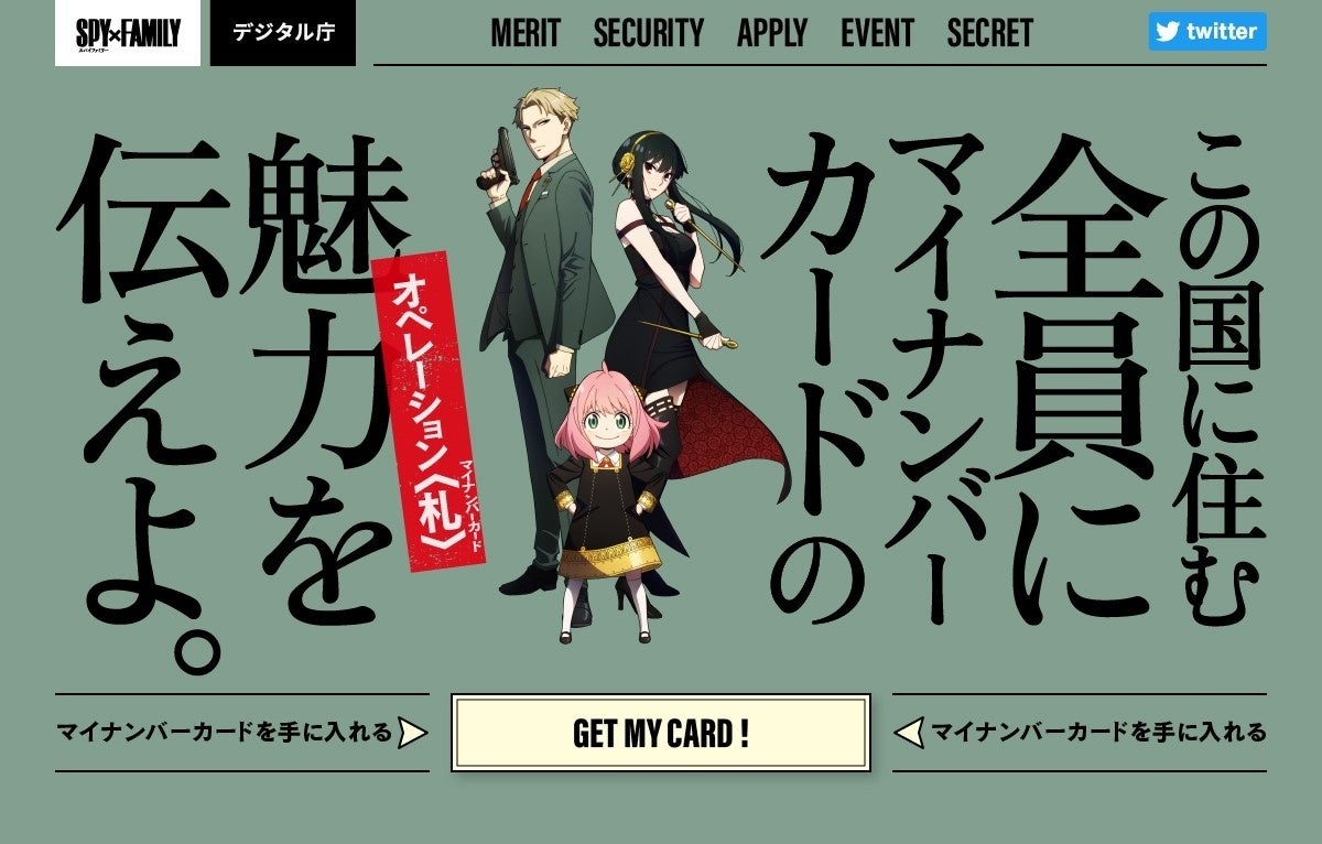 今回のキャンペーンでは、若い世代を含む全世代にマイナンバーカードについて知ってもらうため、「SPY×FAMILY」を使用した様々な企画を実施。期間中には、限定のキャンペーン動画を公開。さらに「SPY×FAMILY」スペシャルコンテンツが届くTwitterキャンペーンや、期間限定の渋谷エリアでの巨大広告、SNS連動型街頭イベントも行います。またマイナンバーカードに関する詳細や利用メリット、申請の手軽さ等を伝えるため、本キャンペーン限定の特設サイトも開設。特設サイトでも様々な仕掛けもご用意しています。