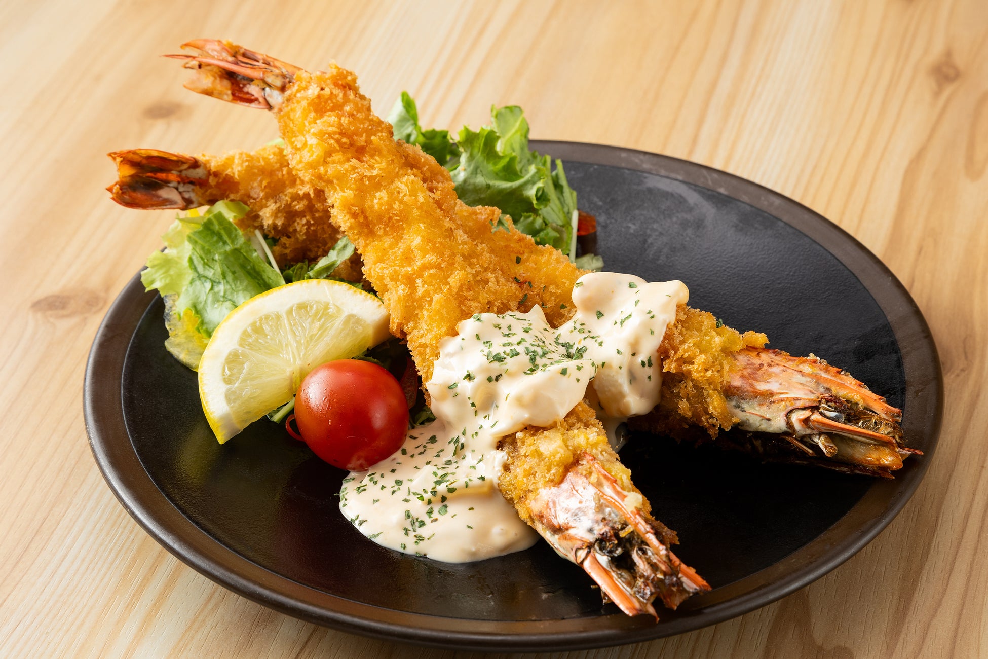有頭ジャンボエビフライ!自家製タルタルソースとぷりっぷり食感がたまりません。