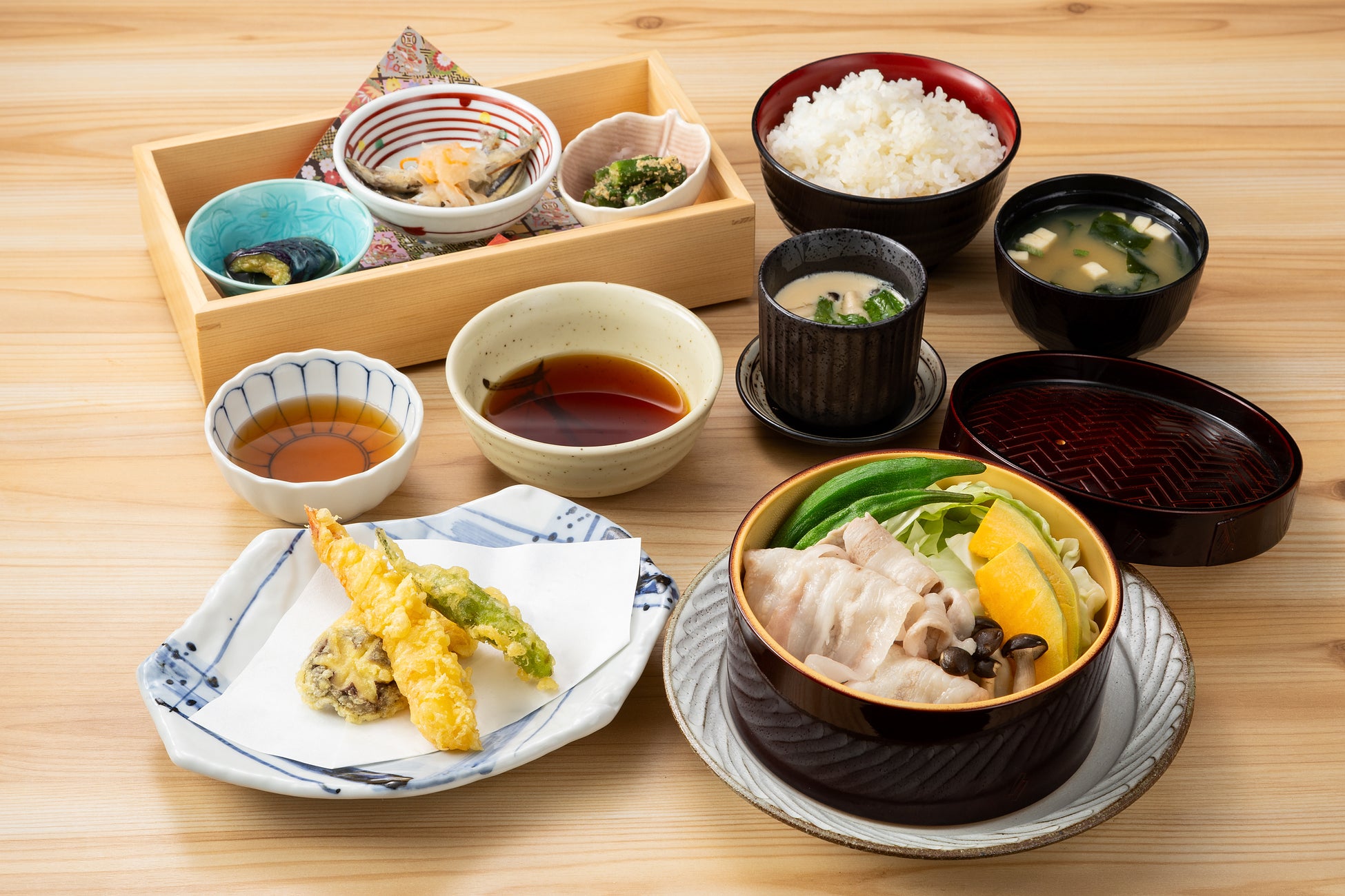 黒豚しゃぶしゃぶ・黒豚とんかつ・新鮮刺身!「くろ屋別邸」のすべてを楽しめる御膳です。