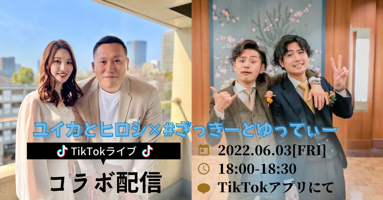 フォロワー数64.4万人の人気TikToker「#ざっきーとゆってぃー」と「ユイカとヒロシ」がスペシャルコラボ!6月3日(金)18:00より配信
