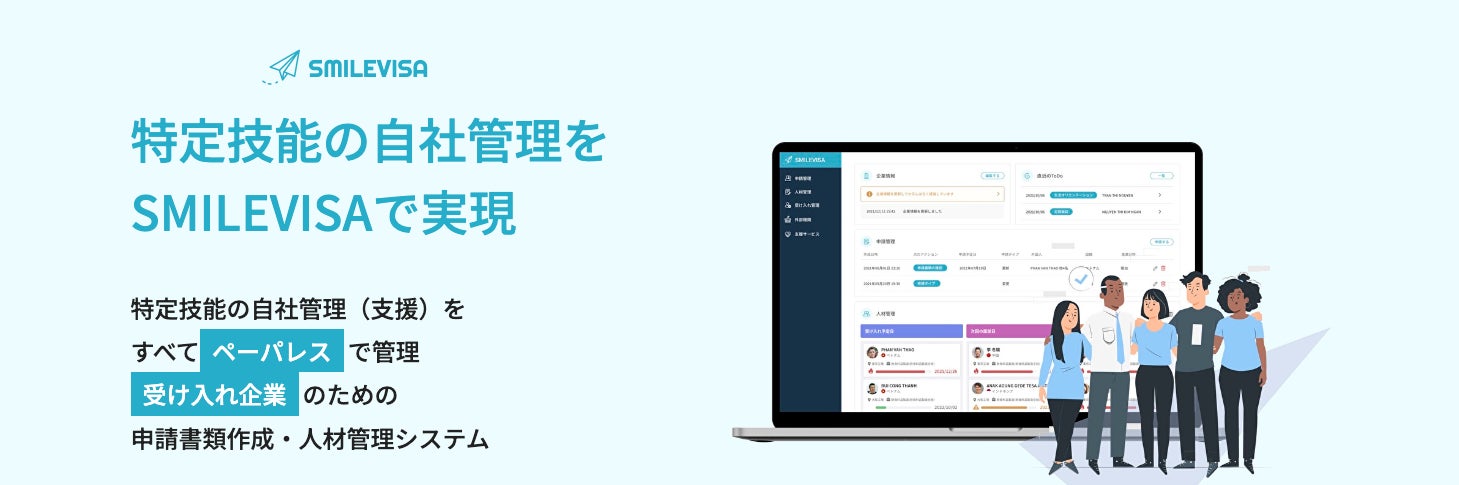 SMILEマッチングのリリースは2024年度中を予定しています。昨年リリースした特定技能管理クラウドサービスSMILEVISAと組み合わせて利用することで外国人雇用から管理まで一気通貫して行うことが可能です。