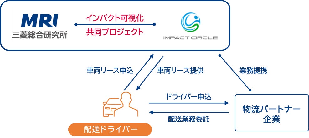 インパクトサークルは2023年9月から、日本国内において、ラストワンマイル配送を担う運送事業者や業務委託ドライバーを支援するインパクトファイナンスサービスの提供を開始しました。このサービスは、配送リソースの逼迫による物流危機を解決するため、ドライバーへの車両リースおよび保険の提供を通じて就業機会を創出し、さらに就業によるインパクト(ドライバー視点でのマイクロインパクトと、パートナー企業や地域社会視点でのマクロインパクト)を創出することで、ポジティブインパクトの最大化を目指しています。