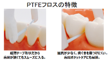 •フロス部分に薄くて切れにくいPTFE(ポリテトラフルオロエチレン)素材を採用