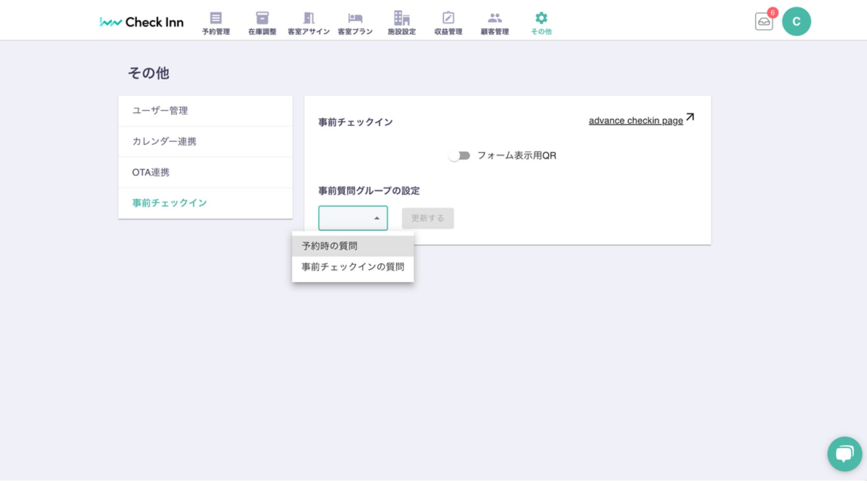 ②施設が「事前チェックイン」の入力画面に表示させる「事前質問」を設定
