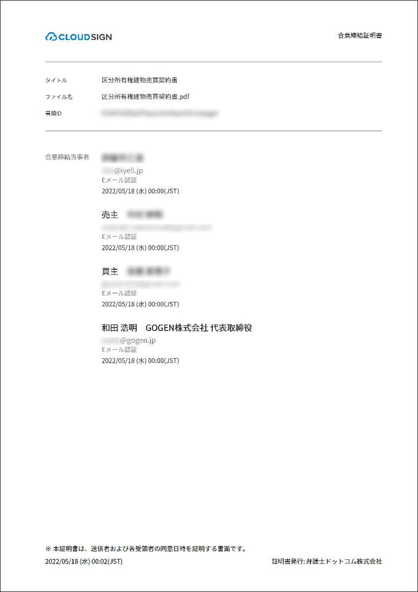 電子署名者:売主、買主、iYell株式会社(宅建業者)、GOGEN株式会社(立会人)