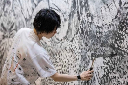 日本全国からレシートを集め、アイロンの熱で変色するレシート(感熱紙)の特徴を生かし、ドローイングしていくアーティストVIKIを招いて参加型アップサイクルイベントを実施。