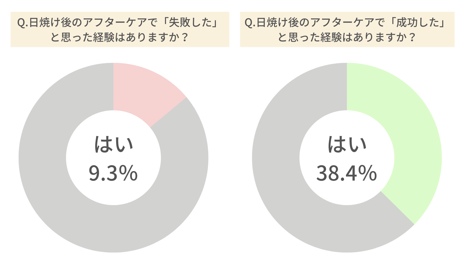 これに対し「日焼け後のアフターケアで「成功した」と思った経験はありますか?」という質問に「はい」と回答した女性は38.4%でした。