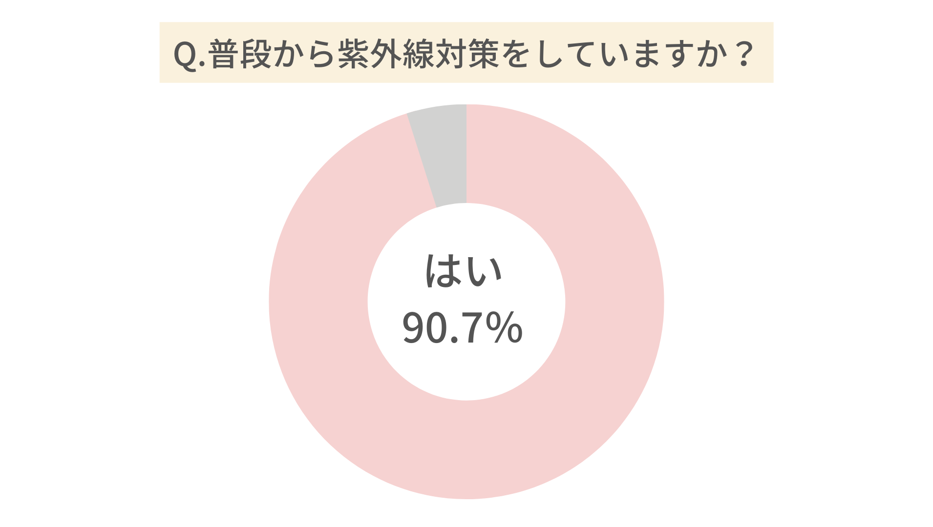 今回、20~40代女性に実施したアンケートでは「普段から紫外線対策をしている」と答えた方の割合は90.7%。