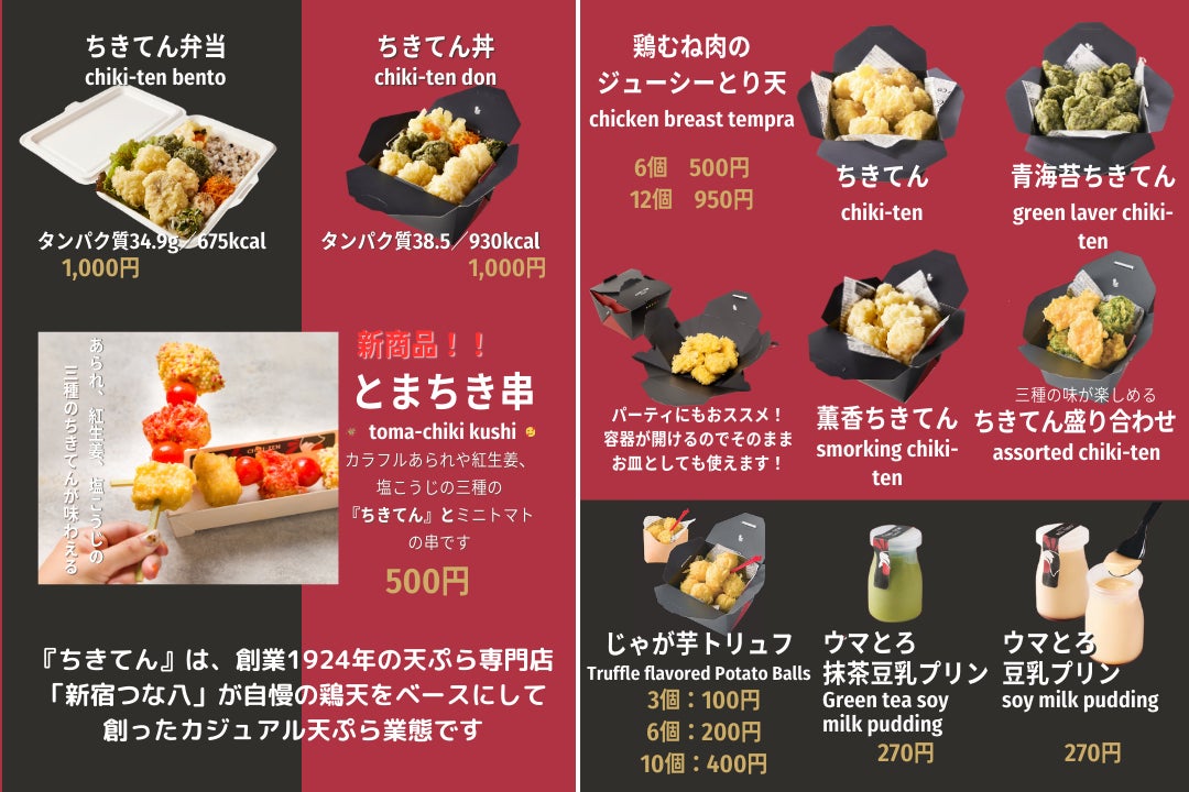 これまで女性インフルエンサー5名と共同開発してきました新商品の”とまちき串”も発売いたします。常に進化し続ける老舗天ぷら専門店として、若い方にも天ぷらを身近に感じていただこうと今回、初の試みとしてインフルエンサーを交えての商品開発を進めてきました。ちきてんのコンセプトである「天ぷらをオシャレに、ヘルシーに、カジュアルに」この三つの要素が融合した、ワンハンドで手軽に楽しめるファーストフード感覚のちきてん(鶏天)串をお楽しみください。