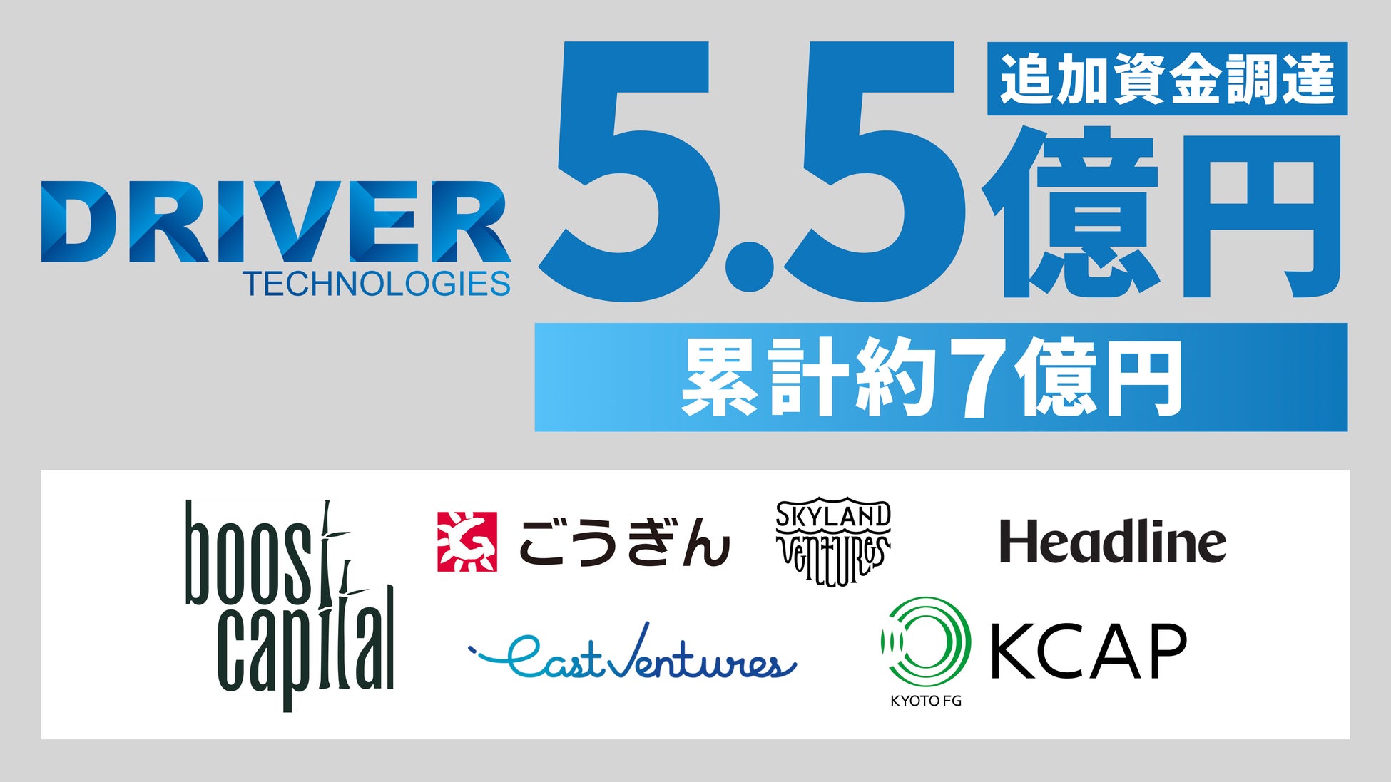 AIとDXを通じてノンデスク業界の変革に挑む株式会社ドライバーテクノロジーズ(本社:東京都港区六本木、代表取締役社長 執行役員CEO:川島 康平)は、2025年3月にシリーズAラウンドとして5.5億円の資金調達を実施致しました。本増資に伴い、既存株主からの追加出資に加え、新たにヤフー株式会社 元代表取締役社長 社長執行役員 CEOの小澤隆生氏が設立したブーストキャピタル1号投資事業有限責任組合、株式会社山陰合同銀行とSkyland Venturesが共同運営するごうぎん Skyland Next 1号投資事業有限責任組合、株式会社京都銀行を傘下に擁する株式会社京都フィナンシャルグループ傘下の京都キャピタルパートナーズ株式会社が運営するKCAPベンチャー1号投資事業有限責任組合、イーストベンチャーズ5号投資事業有限責任組合(前回出資時はイーストベンチャーズ4号投資事業有限責任組合)が新たにドライバーテクノロジーズに株主として資本参画しました。