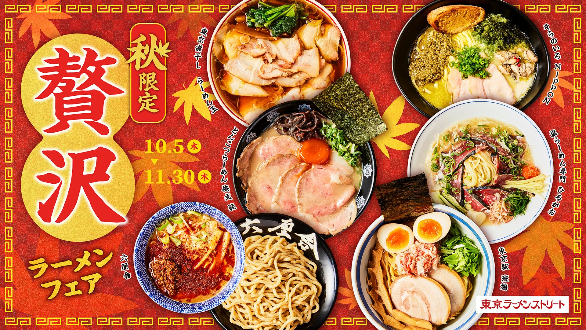 2023年10⽉5⽇(⽊)~2023年11⽉30⽇(⽊)まで【東京ラーメンストリート「秋限定 贅沢ラーメンフェア」】を開催いたします。