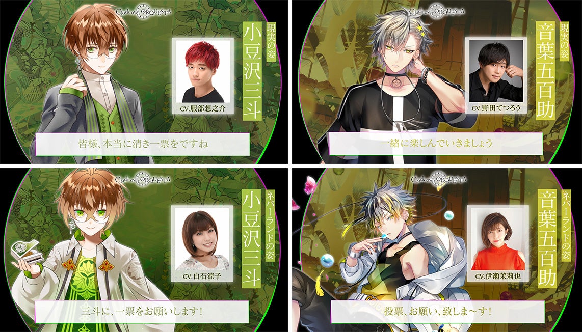 SNS連動型キャラクターソングプロジェクト『Clock over ORQUESTA(クロック・オーバー・オルケスタ)』(株式会社viviON、所在地:東京都千代田区、代表取締役:明石耕作) https://clockoverorquesta.com/ では、ユーザーの投票によって物語の展開とキャラクターバトルの勝敗が変化するバトルロイヤルを実施しています。